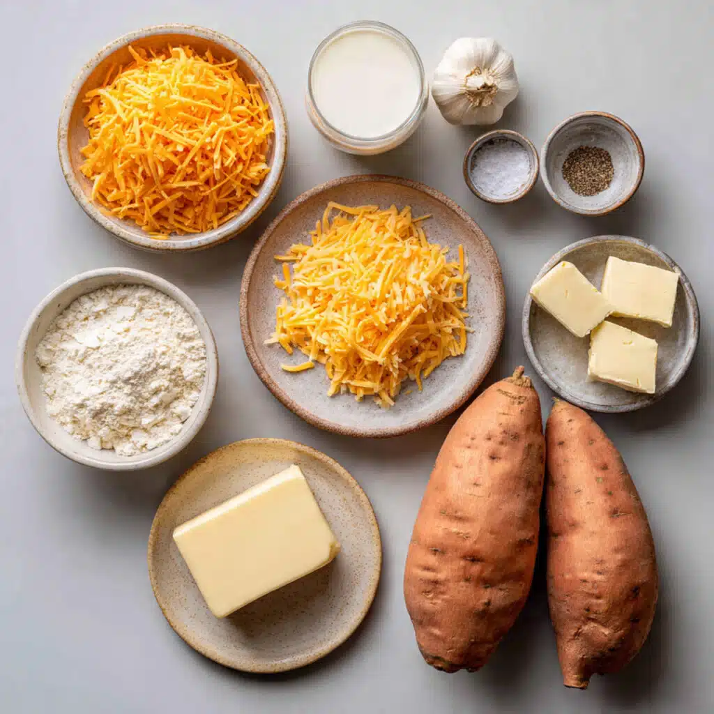 A creamy and comforting baked dish made with tender sweet potato layers and rich melted cheese, perfect for cozy meals or sharing with family.