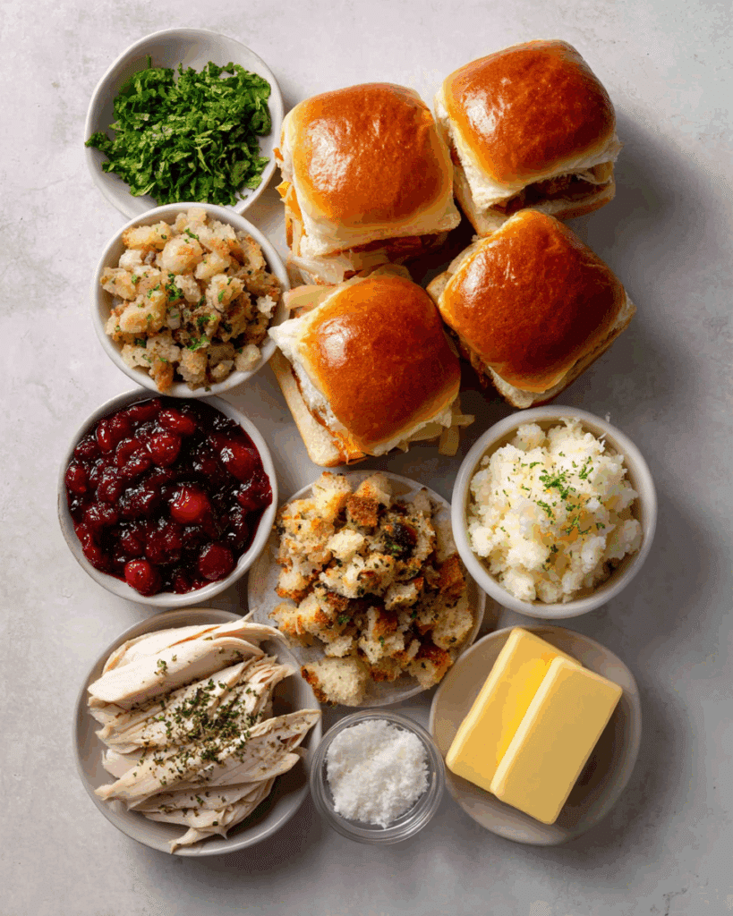Stuffing: More than just a side, stuffing acts as a savory, sponge-like base that holds moisture and flavor. When baked into the slider, it becomes almost patty-like and deeply satisfying.