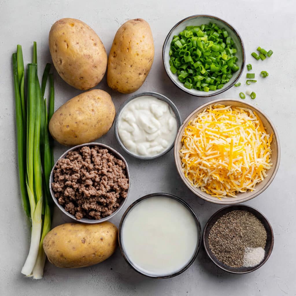 - Russet Potatoes: 4 large. Their firm skins and fluffy interiors are perfect for baking and scooping.