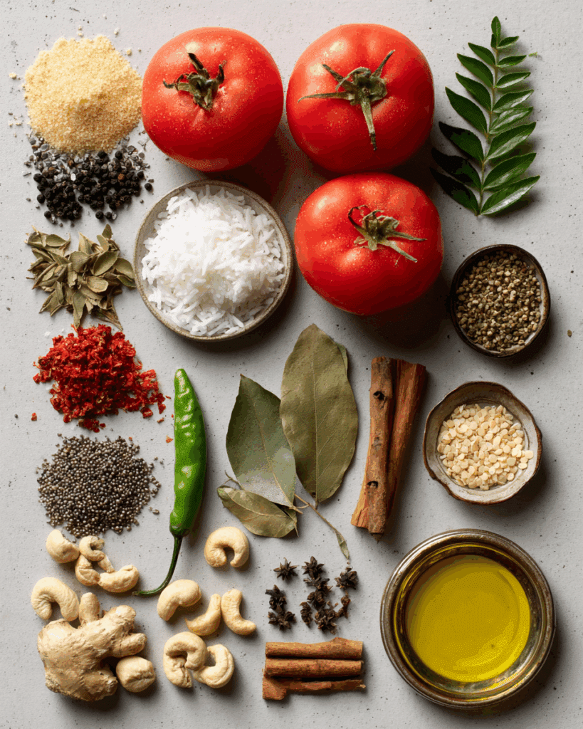A creamy, spiced South Indian curry made with ripe tomatoes, coconut, and whole spices. Perfect with parotta, dosa, or rice.