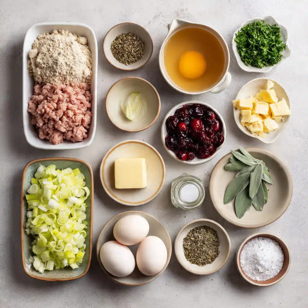 - Ground turkey: 1 1/2 pounds, this is the hearty base of the dish and keeps the meatballs tender while soaking up all the herb and stuffing flavor.
