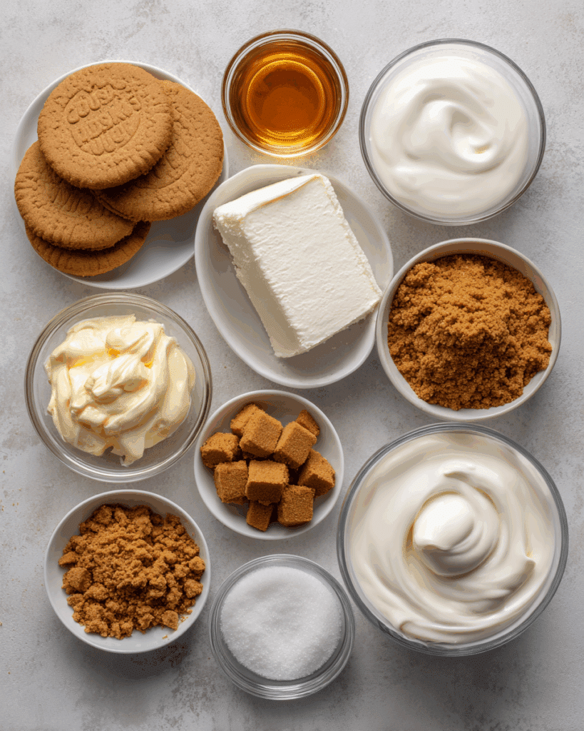 Ingredients in Vanilla Biscoff No Bake Cheesecake